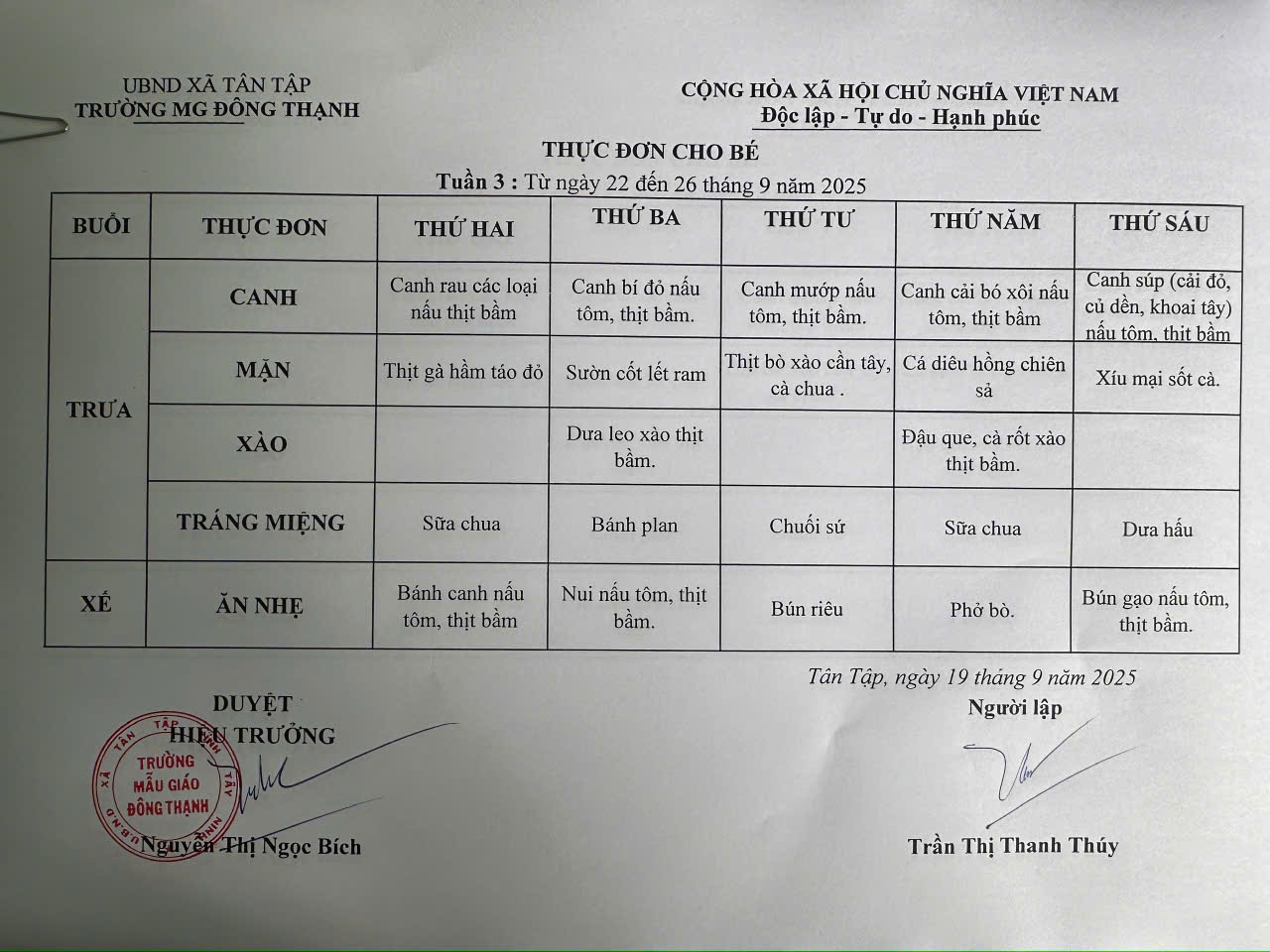 Thông báo về việc đóng tiền ăn bán trú, tiền dịch vụ bán trú cho trẻ tháng 9/2025