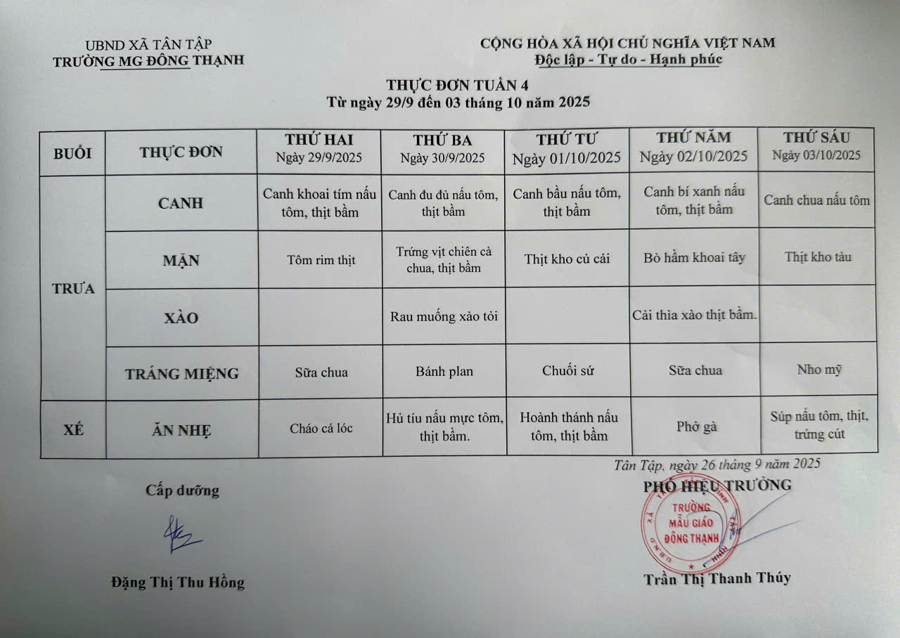 • Thực đơn tuần 4 của trẻ .