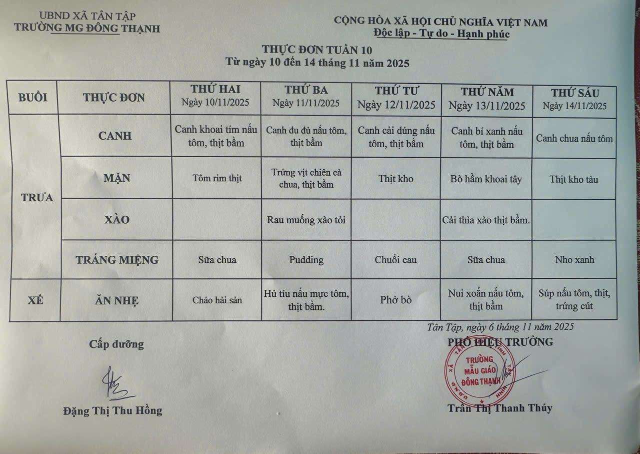 Thông báo về việc đóng tiền ăn bán trú cho trẻ tháng 12/2025