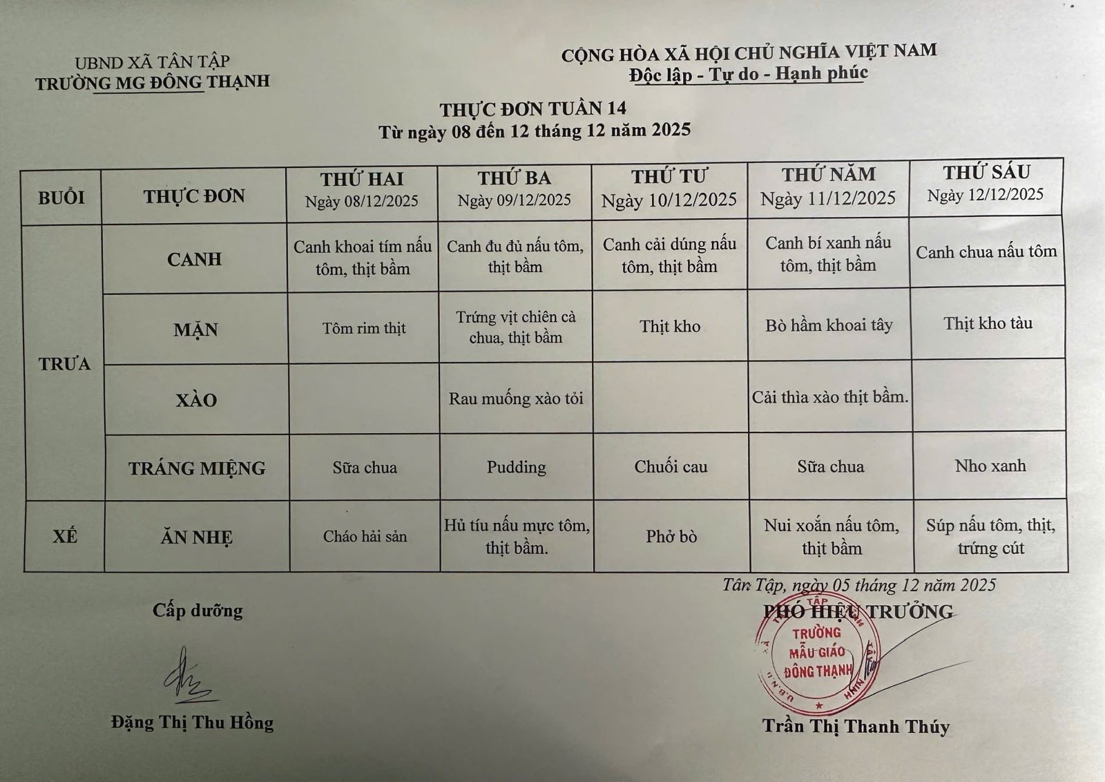 Thông báo về việc đóng tiền ăn bán trú cho trẻ tháng 12/2025