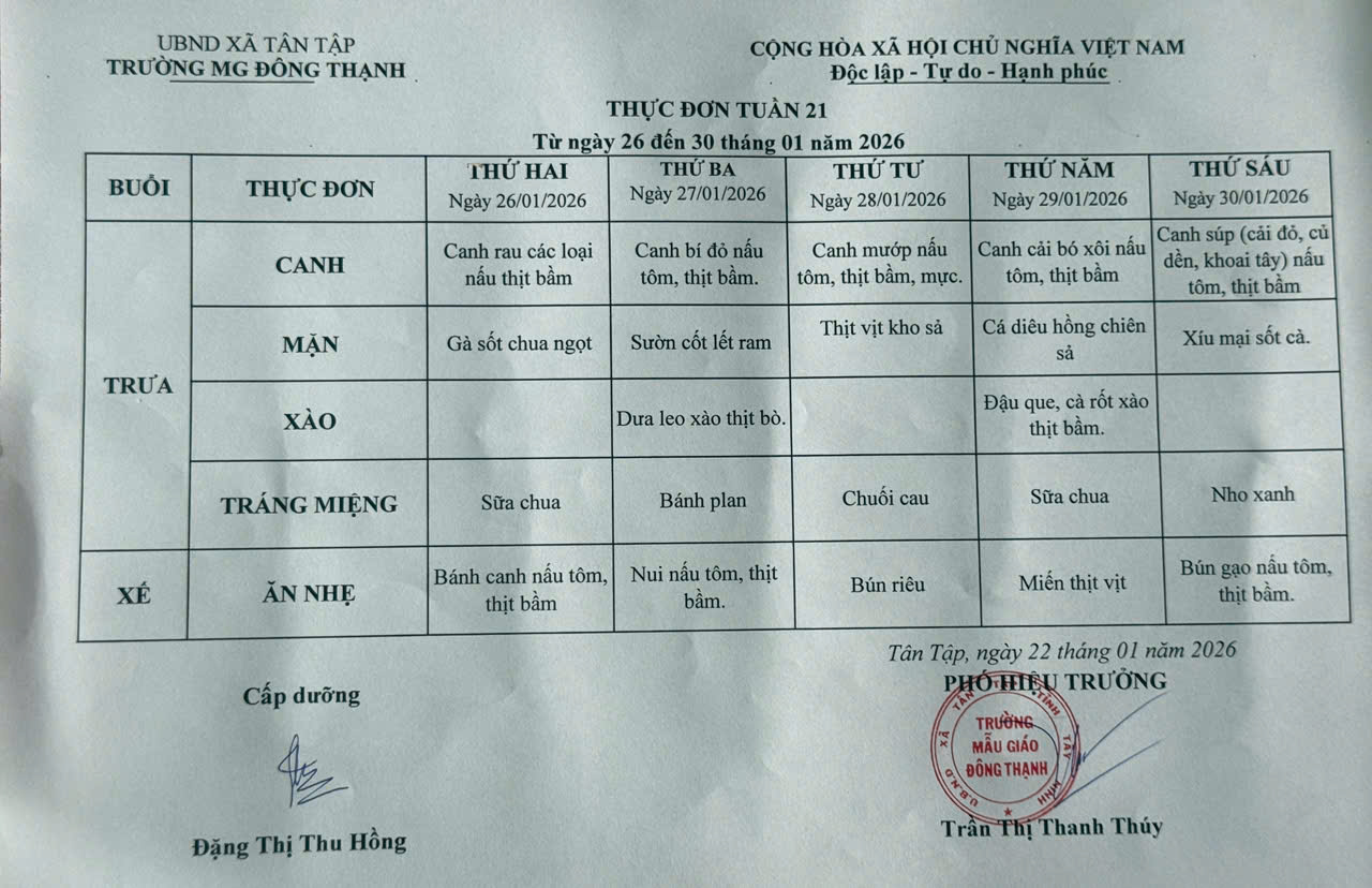Thông báo về việc đóng tiền ăn bán trú cho trẻ tháng 01/2026