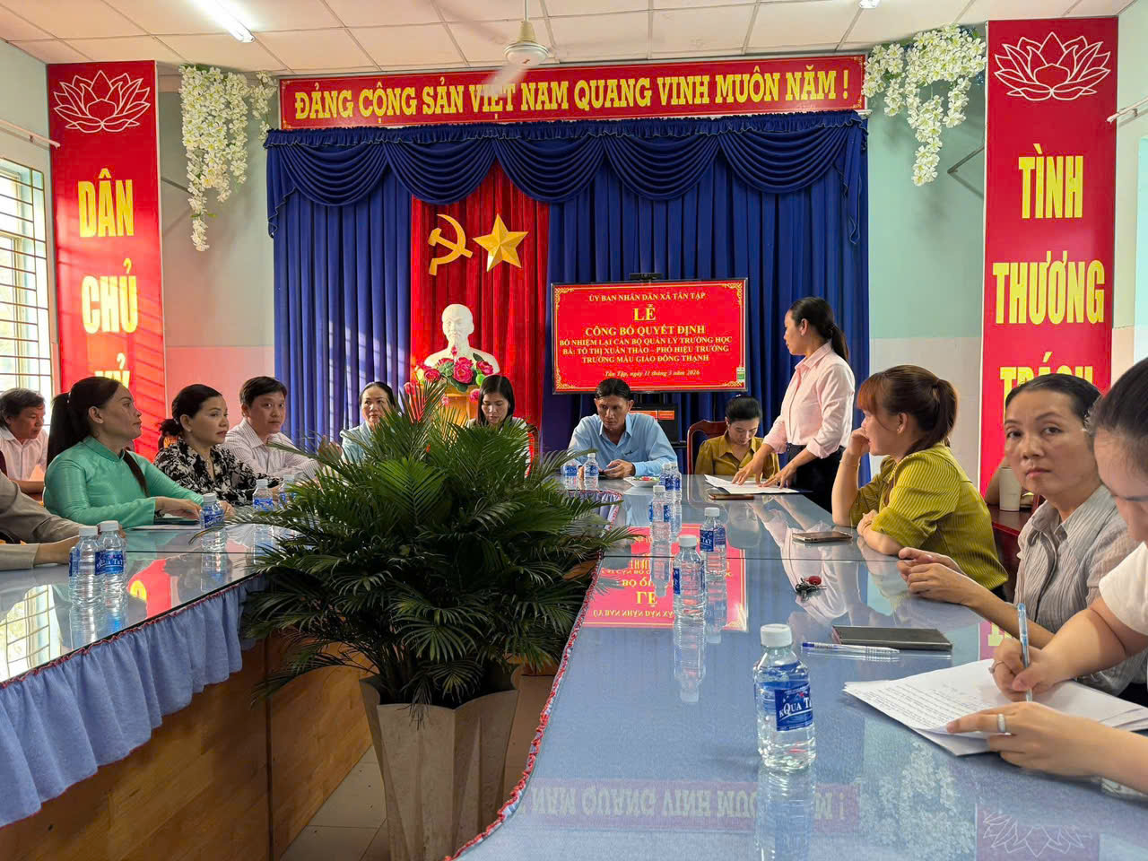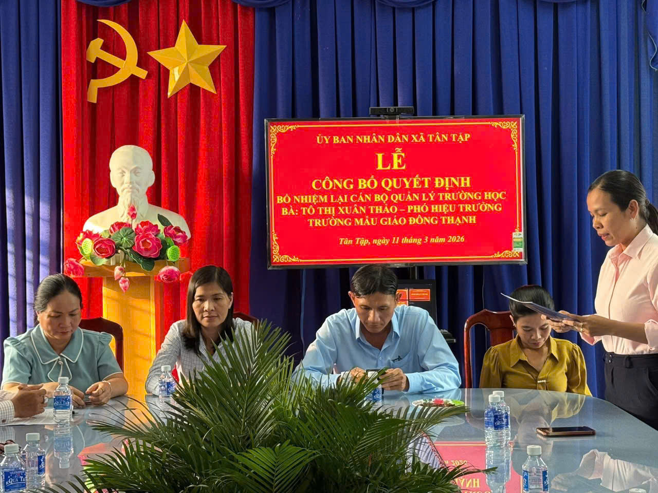 Ngày 11/3/2026 , UBND xã Tân Tập tổ chức Hội nghị công bố quyết định bổ nhiệm lại viên chức quản lý với cô Tô Thị Xuân Thảo, Phó Hiệu trưởng Trường Mẫu giáo Đông Thạnh.