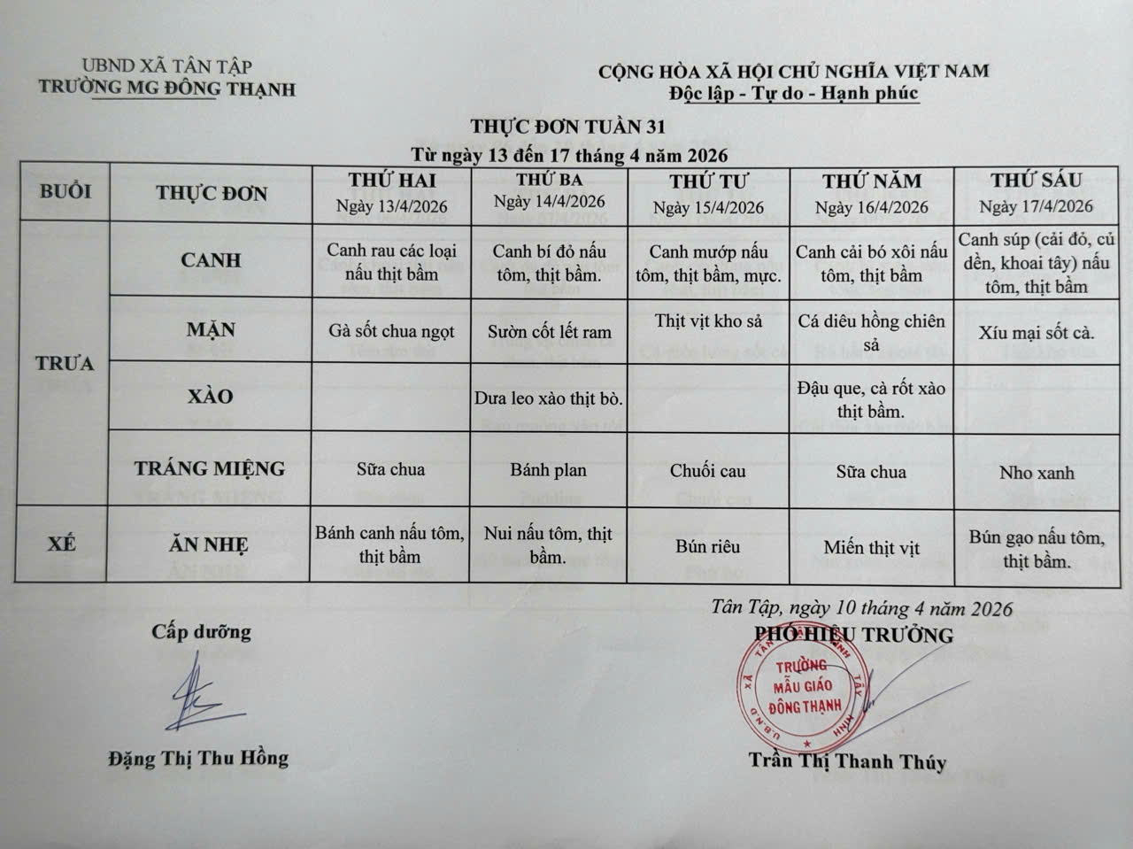 • Thực đơn tuần 32 của trẻ .
